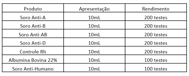 Qual o rendimento dos produtos da linha de Imunohematologia Ebram?